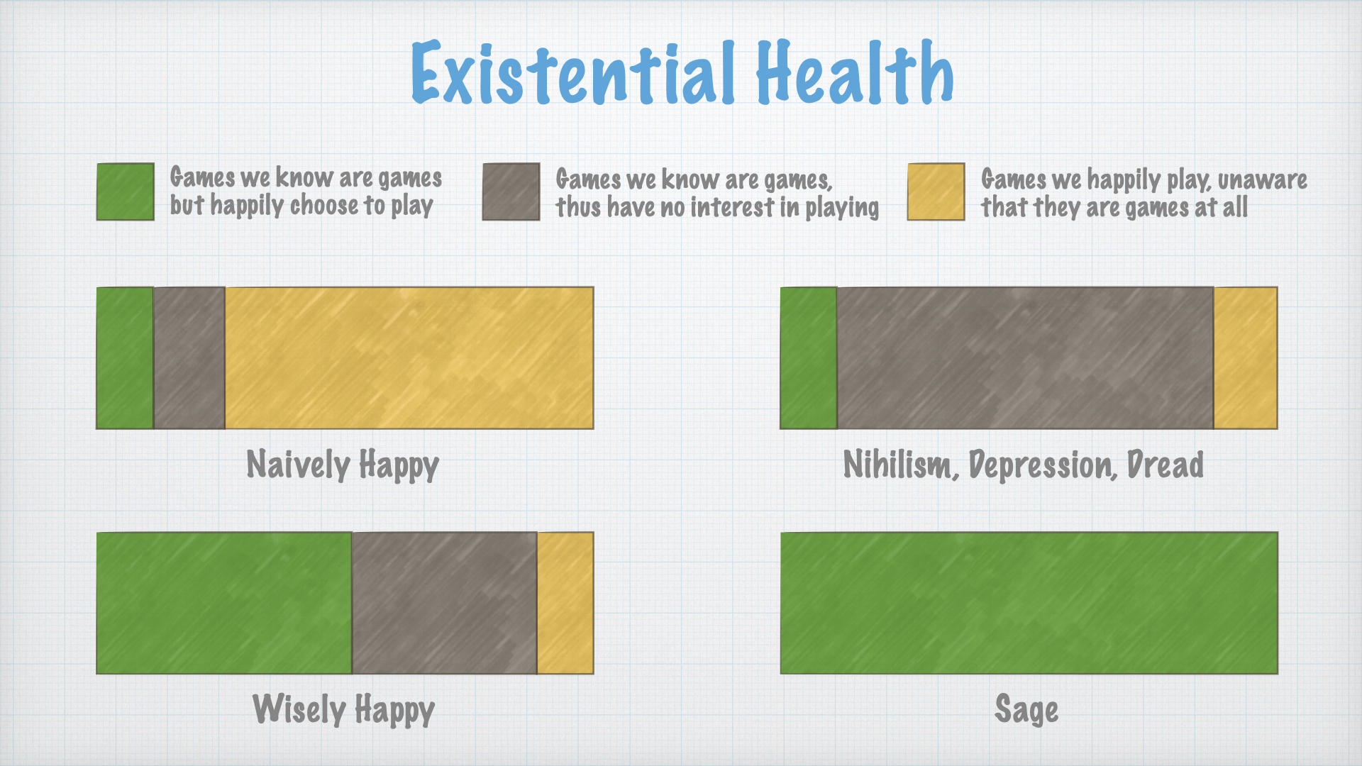 How to retain a healthy distribution in how one subjectively experiences these games? There appears to be no alternative but expand one's territory. You might adopt the hopeless belief that, no matter how much you expand, you will never be able to invite enough 'green' into your life to counterbalance the vast 'grey' already present. Yet that belief remains untested. Once you make it through even a single episode of expansion, you may be startled by how boundless the potential for expansion actually is.